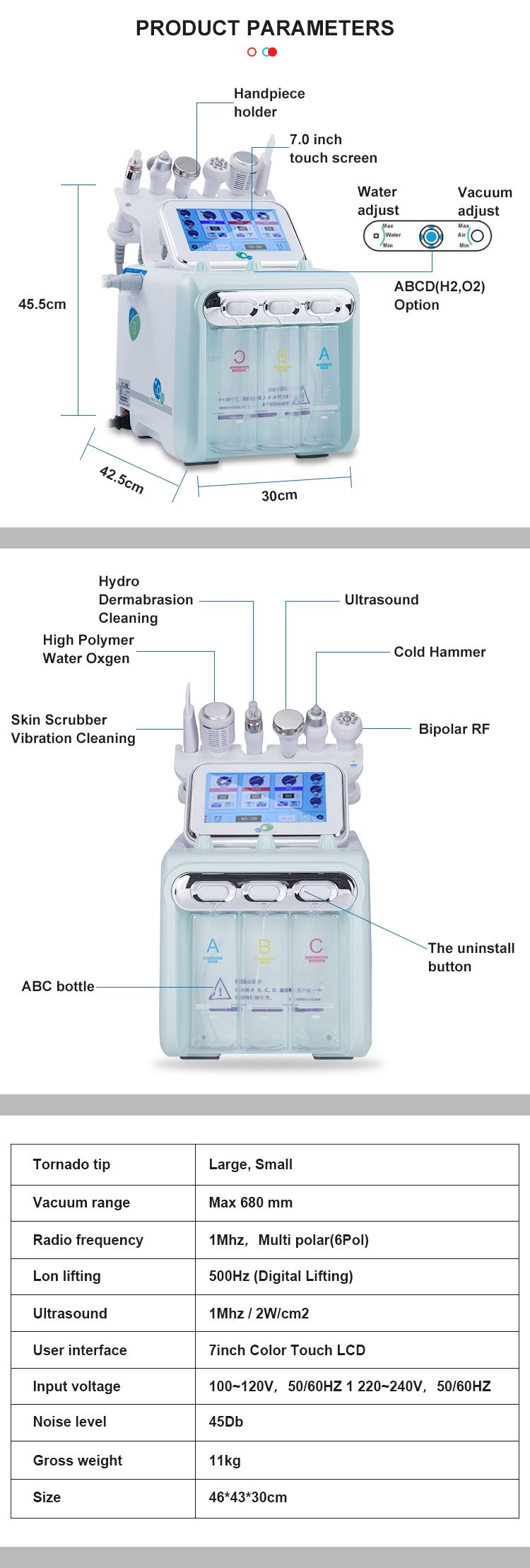 High Frequency Hydrodermabrasion 6 In1 Microdermabrasion Face Machine UK Plug Hydrofacial Facial Machine